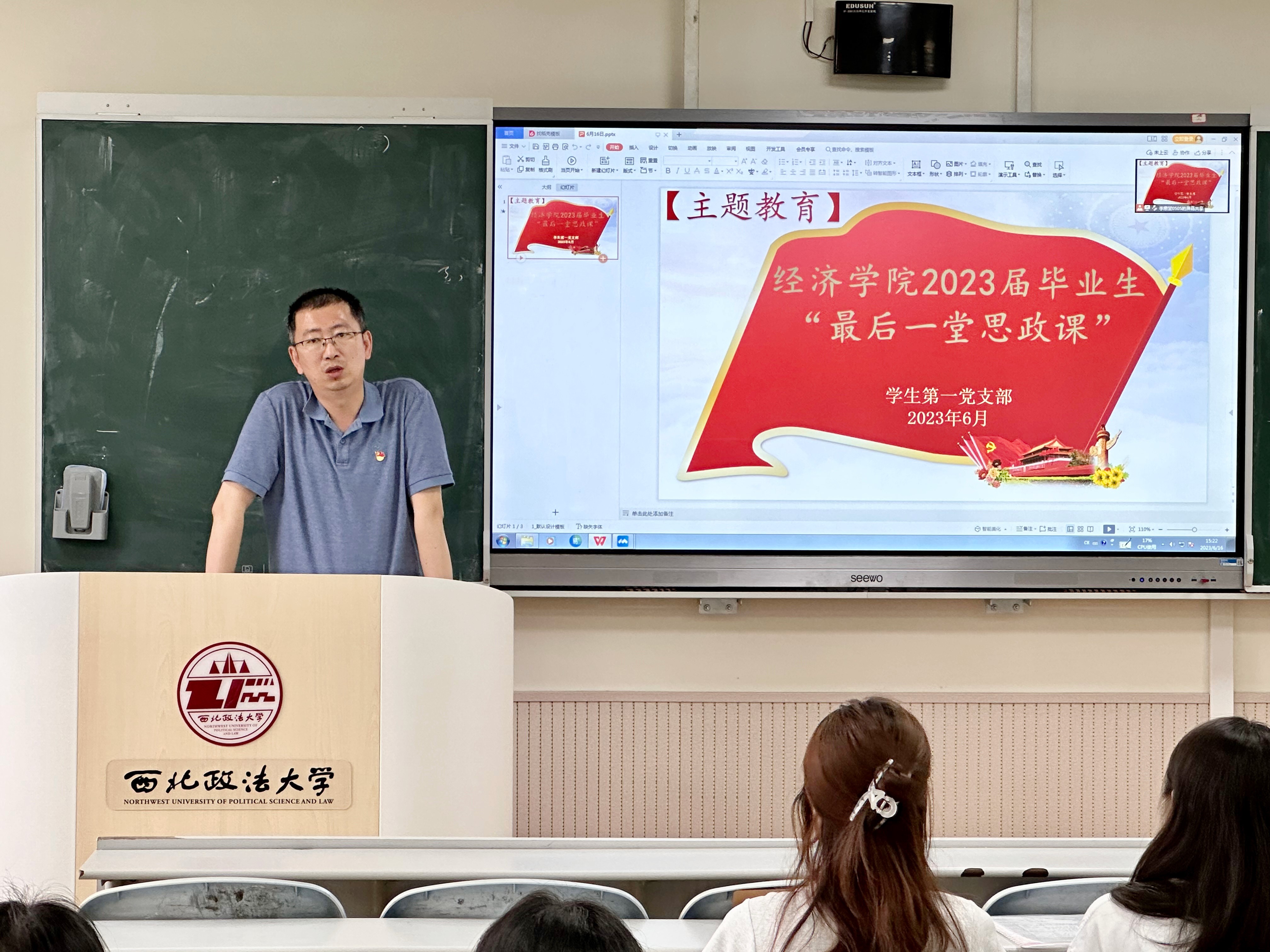 为深入开展学习贯彻习近平新时代中国特色社会主义思想主题教育,做好毕业生离校教育和思想政治工作,引导学生党员牢记身份、发挥先锋模范作用、立足岗位做贡献。6月19日,bat365在线平台官方网站组织2023届毕业生在长安校区天平楼共上“最后一堂思政课”。学院党委副书记张文渊、支部书记周瑾萱和学生第一党支部全体党员参加此次活动。