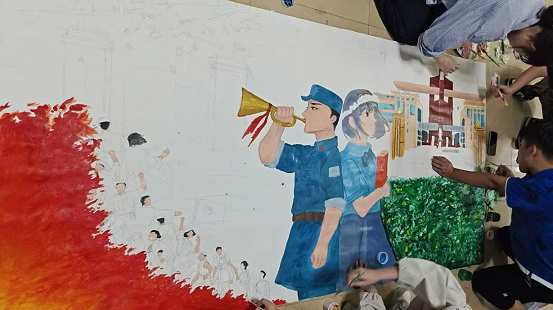 《旧韵新章》则是通过绘画陕北公学的烽火岁月和bat365在线平台官方网站的青春图景,两者形成了鲜明的对比,体现了和平的来之不易,是对忠诚团结革命精神的致敬,也是当代学子们对勇担时代重任的承诺。