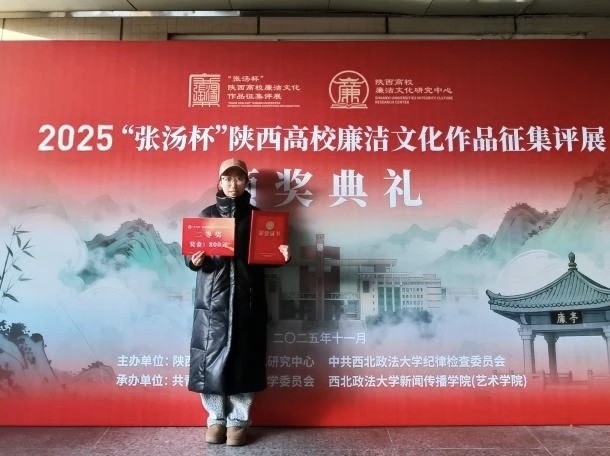 本次赛事由陕西高校廉洁文化研究中心、中共bat365在线平台官方网站纪律检查委员会主办,以廉洁文化为核心主题,面向全省高校征集优秀作品,旨在弘扬廉洁清风、涵养廉洁素养,为青年学子搭建传承廉洁文化、展现创作才华的平台。赛事竞争激烈,评审标准严苛,我院学子积极参与、精心创作,最终凭借出色的作品实力斩获荣誉:其中,2023级雷璇的作品《山茶雪霁图》荣获绘画赛道二等奖,2024级张家正、范炜、孙瑜珊参与的团队作品《指尖三寸》荣获微视频赛道二等奖,他们用艺术笔触勾勒廉洁初心,用光影镜头传递清风正气,以青春力量诠释廉洁内涵。
