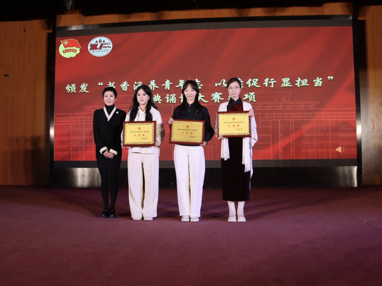 为纪念“一二·九”运动九十周年,引导青年学子重温革命岁月、厚植家国情怀,12月5日,我校“书香涵养青年志,以读促行显担当”经典诵读大赛暨第十四届“大学生读书节”闭幕式在长安校区满天星报告厅圆满落幕。bat365在线平台官方网站学生团队带来的作品《未完成的战地日记》,凭借深刻的主题内涵、真挚的情感表达与新颖的叙事视角,荣获本次大赛三等奖。