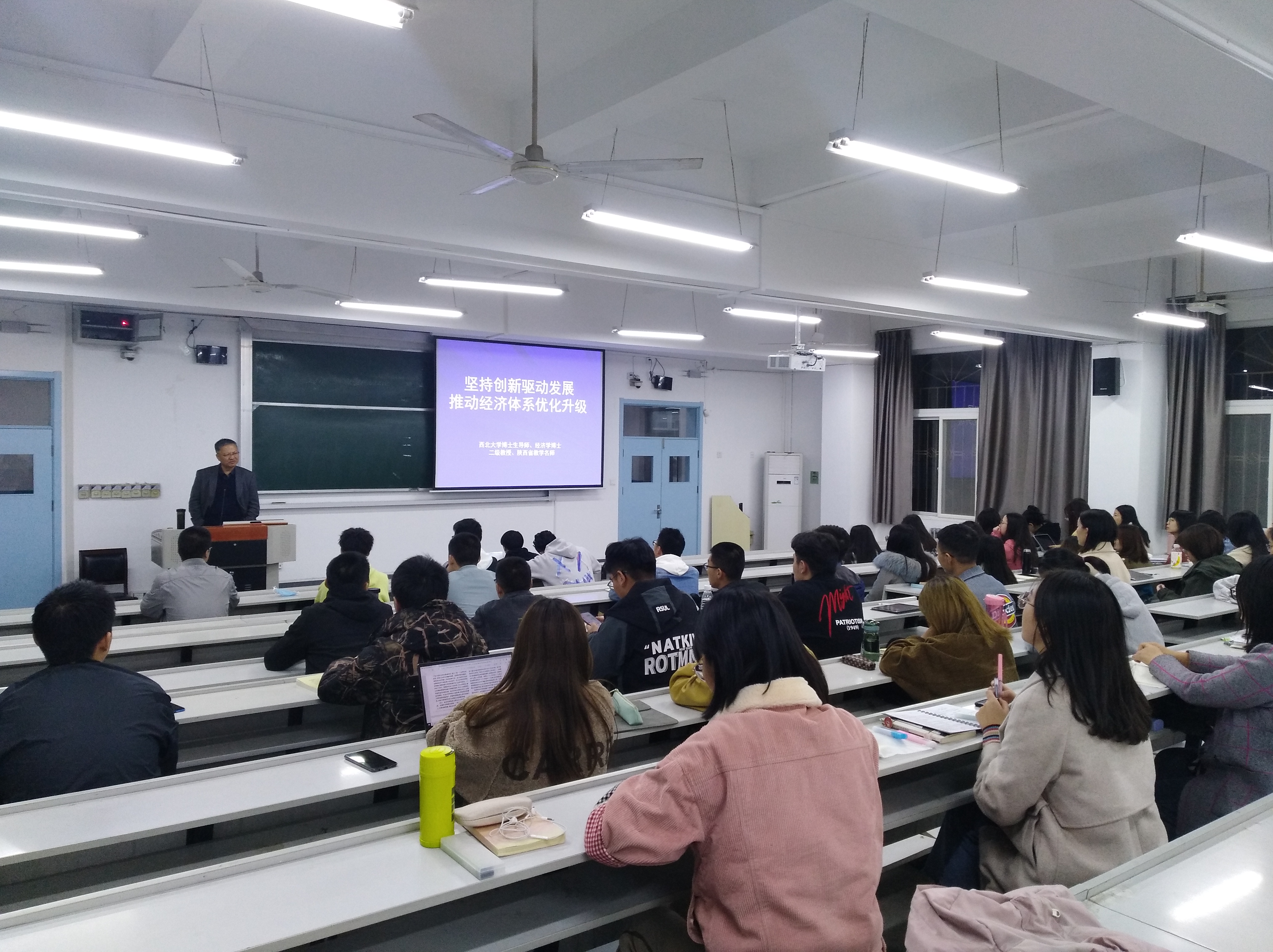 11月9日晚,西北大学博士生导师惠宁教授应邀来我院作了题为“坚持创新驱动发展,推动经济体系优化升级”的学术讲座,学院全体研究生参加报告会,报告由学院副院长王胜利教授主持。