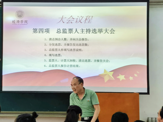 随后,副书记张文渊对选举方案、选举流程等内容进行详细说明;并通过了换届大会的总监票人、监票人、计票人名单,分别由张广计、祝越及杜佳、徐靓、段蓓蕾、王隽六位教职工担任。接着,总监票人张广计老师主持选票的发放、填写、统计及报告流程。最后,大会主持人张文渊副书记宣布了选举结果。