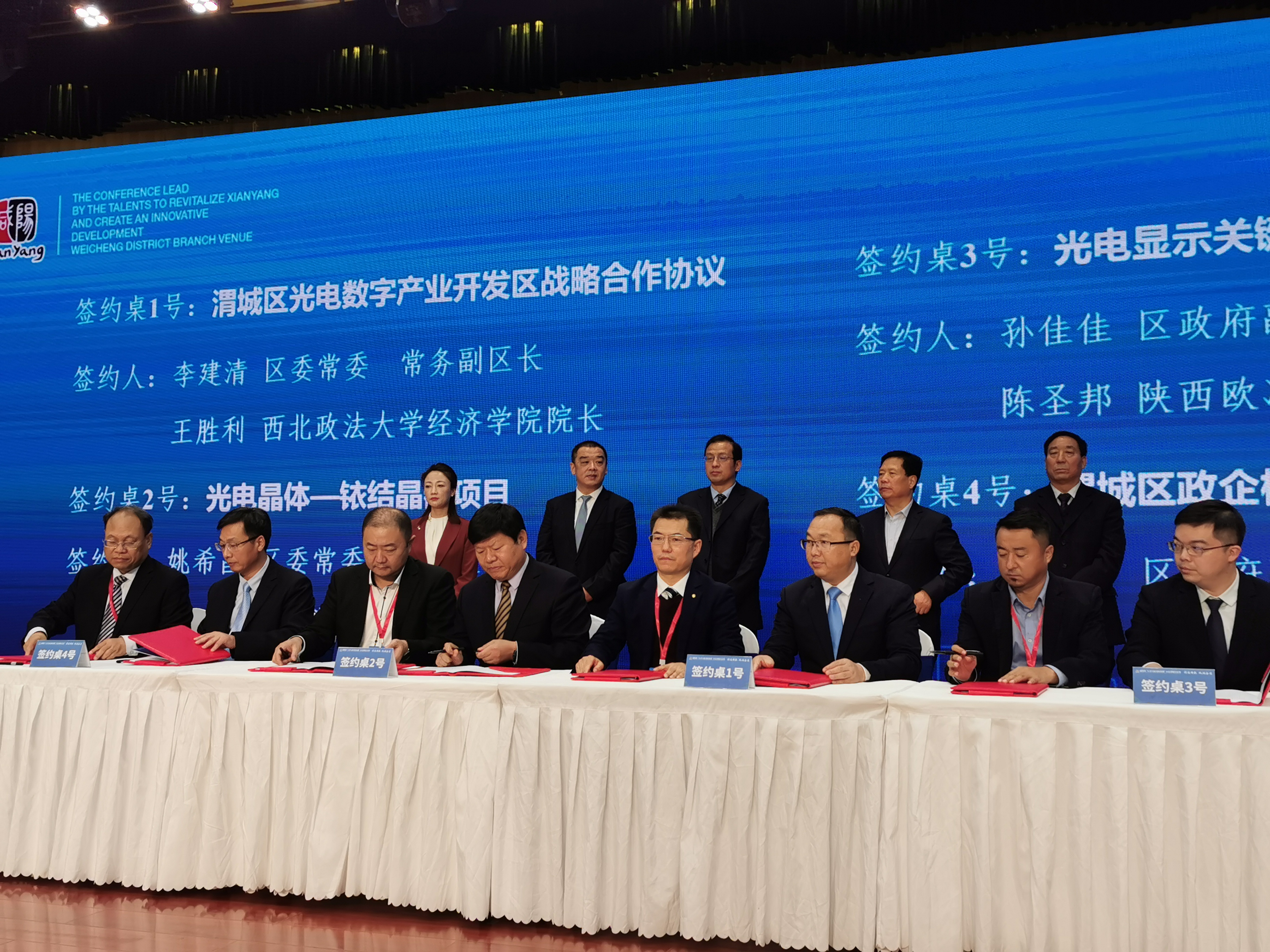 为贯彻落实习近平总书记在中央人才工作会议上的讲话精神,落实省委省政府建设秦创原创新驱动平台的重大部署,咸阳市于10月15日召开“人才兴咸、创新发展”大会。bat365在线平台官方网站刘光岭教授、王胜利教授受邀参加咸阳市“人才兴咸、创新发展”大会渭城区分会,王胜利院长代表bat365在线平台官方网站与咸阳市渭城区政府签订“渭城区光电数字产业开发区战略合作协议”。