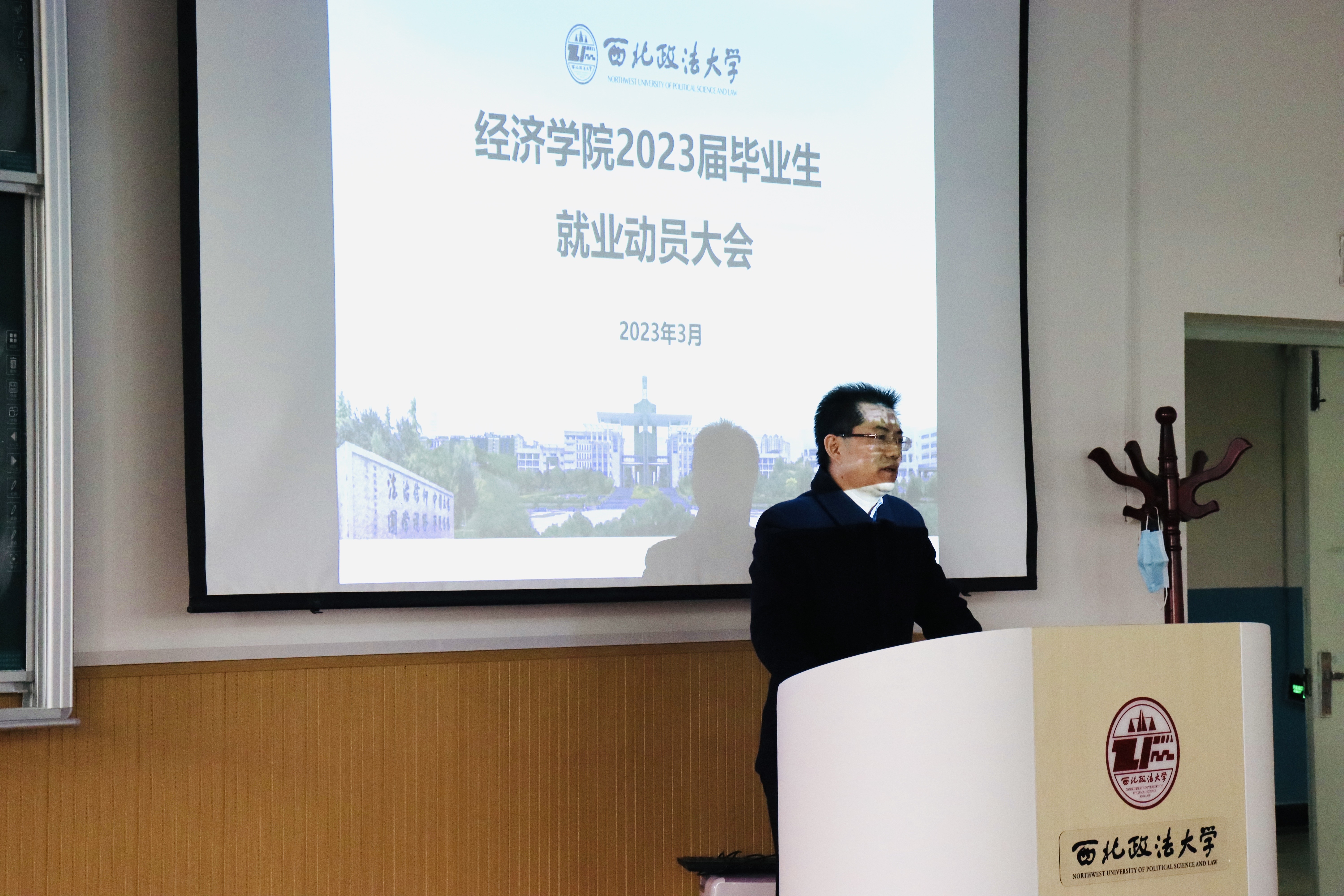 为落实教育部和省教育厅关于“春季促就业攻坚行动”的相关精神和要求,进一步推进毕业生就业工作,引导2023届毕业生紧抓就业机遇、合理规划人生,bat365在线平台官方网站于3月15日在长安校区召开了2023届毕业生就业动员大会。学院院长王胜利、党委副书记张文渊,招生就业处杨军,国际交流与合作处武媛媛出席会议,2023届全体在校毕业生及部分2020级在校生代表参加会议。会议由2023届毕业年级辅导员周瑾萱主持。