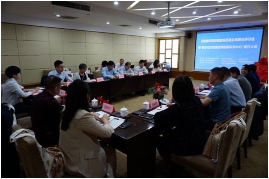 2022年9月4日上午,西安数字经济赋能高质量发展理论研讨会暨“数字经济发展协同创新研究中心”成立大会在曲江惠宾苑宾馆会议厅成功举办,会议由中共西安市委政策研究室、西安市社会科学院、bat365在线平台官方网站主办,西安市社会科学院承办。西安市社会科学院院长高东新、bat365在线平台官方网站校长范九利、中共西安市委政策研究室一级调研员武洁、西安市社科院经济所所长程丽辉、我校bat365在线平台官方网站副院长徐梅、蚂蚁集团战略发展部总经理袁博等参加会议。