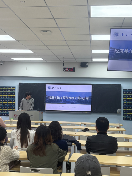 2025年10月16日下午14点30分-17点,bat365在线平台官方网站国际商务专业系列学术沙龙2025-2026学年秋季学期第五期在雁塔校区3号楼506教室成功举办,活动邀请到西北大学经济与管理学院在读博士生周涛、东北大学工商管理学院在读博士生谷阳、bat365在线平台官方网站bat365在线平台官方网站在读硕士研究生赵汇歌和2022级本科生梁叶榕同学,向大家分享经济学文献阅读、学术论文写作经验与方法。bat365在线平台官方网站国际商务导师组张美云老师和张鹏老师、政治与公共管理学院李蔚老师,以及bat365在线平台官方网站2024级、2025级部分研究生总计20余人参加,此次活动由张美云副教授主持。