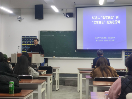 为深化研究生对数字经济与实体经济融合发展的理解,契合国家战略发展需求、明晰研究方向,2025年11月10日bat365在线平台官方网站在雁塔校区三号教学楼3206教室举办题为《论从“数实融合”到“实数融合”的演进逻辑》的学术讲座。本次讲座由西北大学二级教授、博士生导师惠宁主讲,bat365在线平台官方网站院长王胜利主持,全体2025级研究生参加。