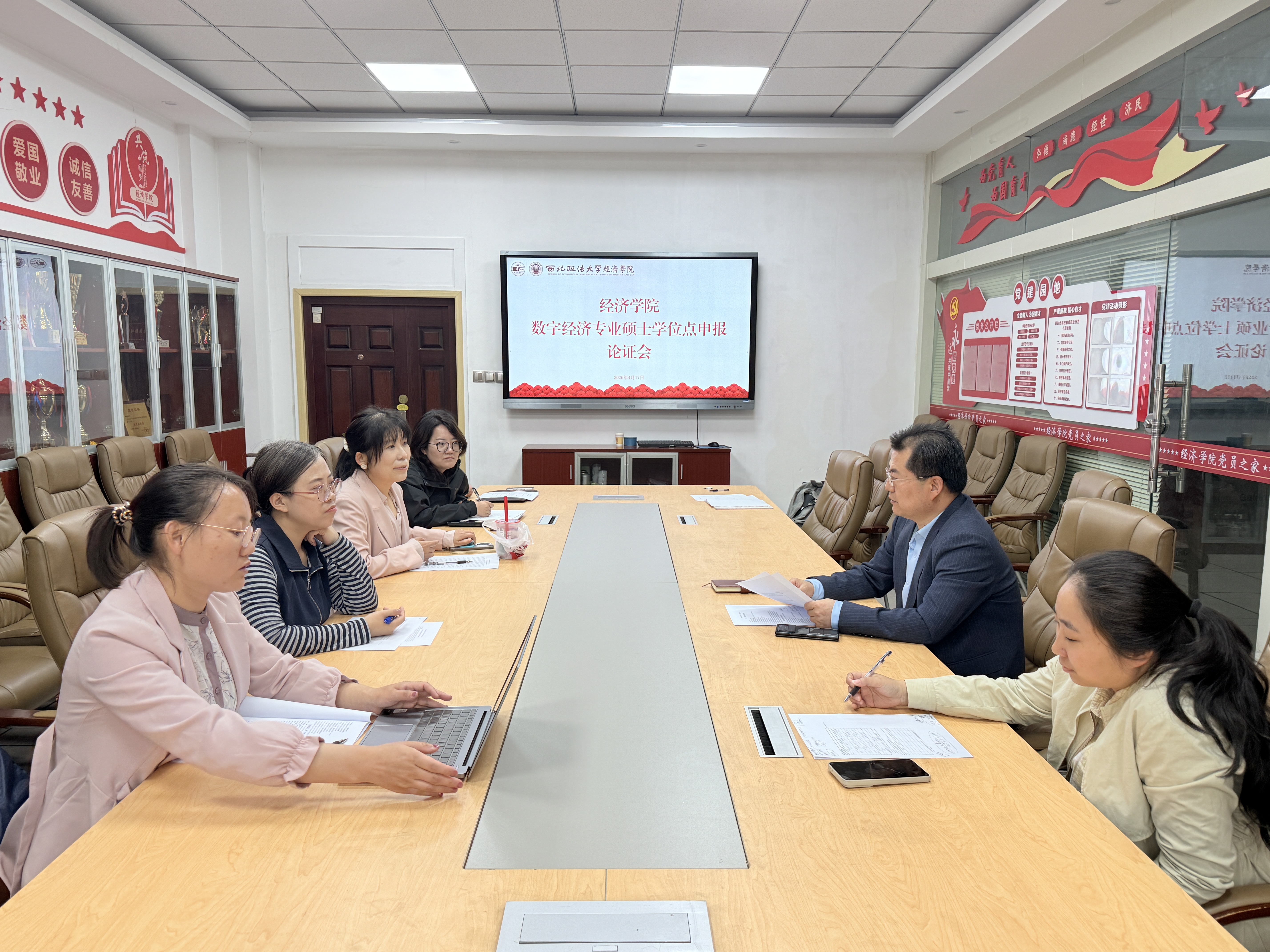 2026年4月17日,bat365在线平台官方网站在关天会议室组织召开数字经济专业硕士学位点申报推进会,王胜利院长主持会议,学院数字经济专硕建设团队全体成员参会。